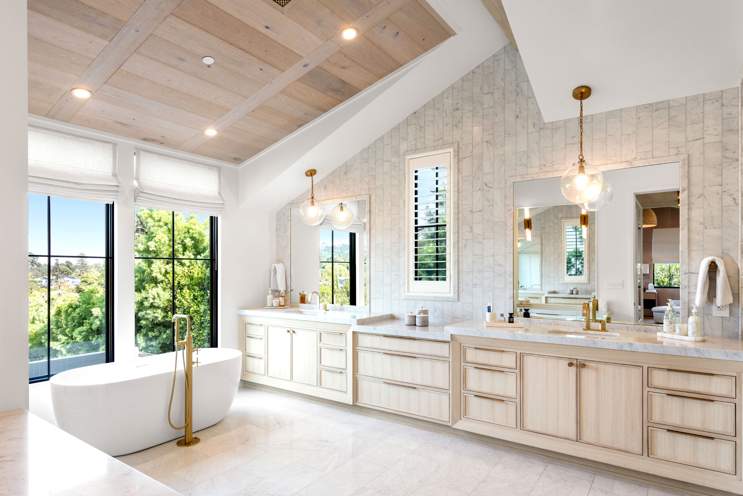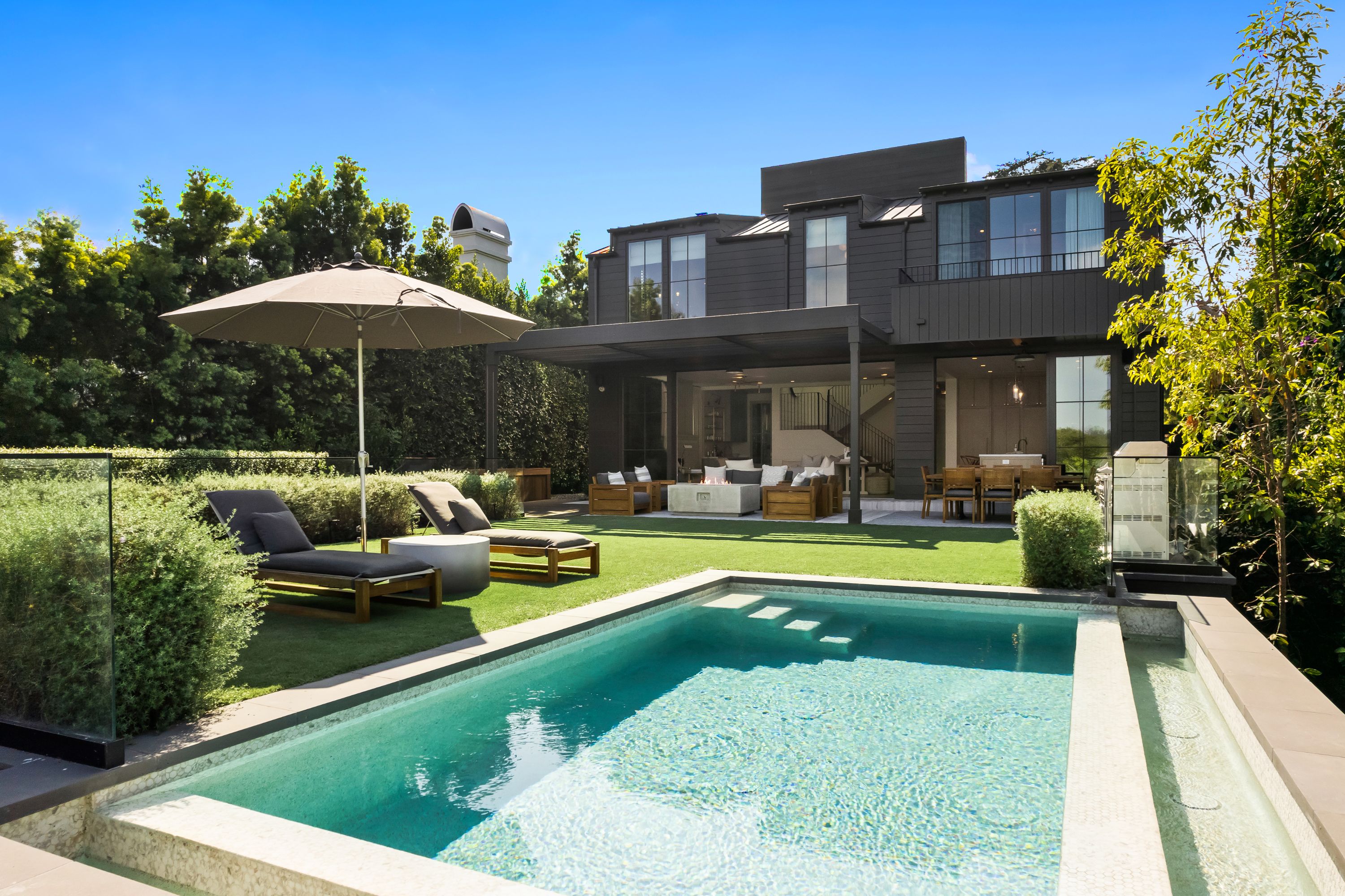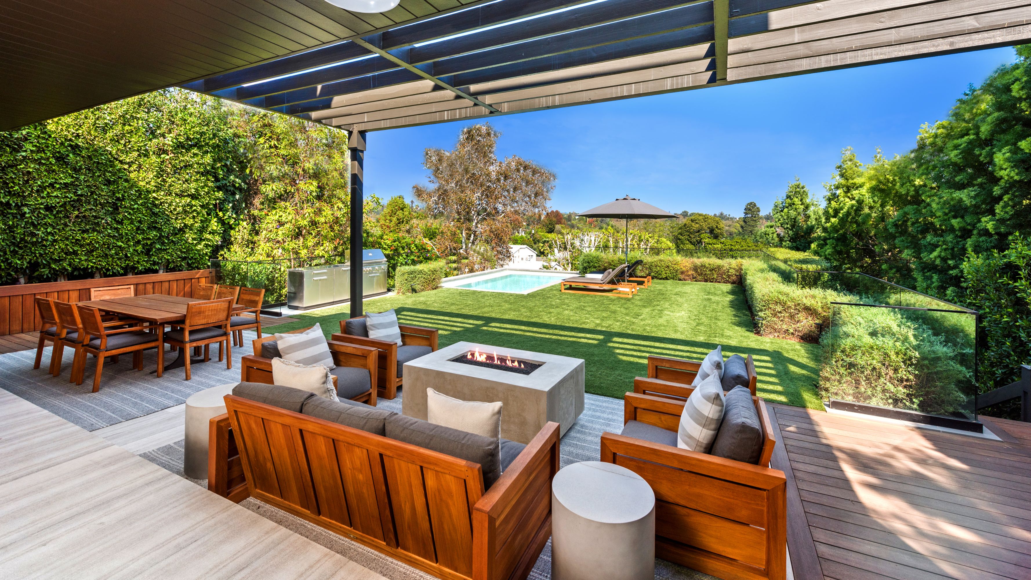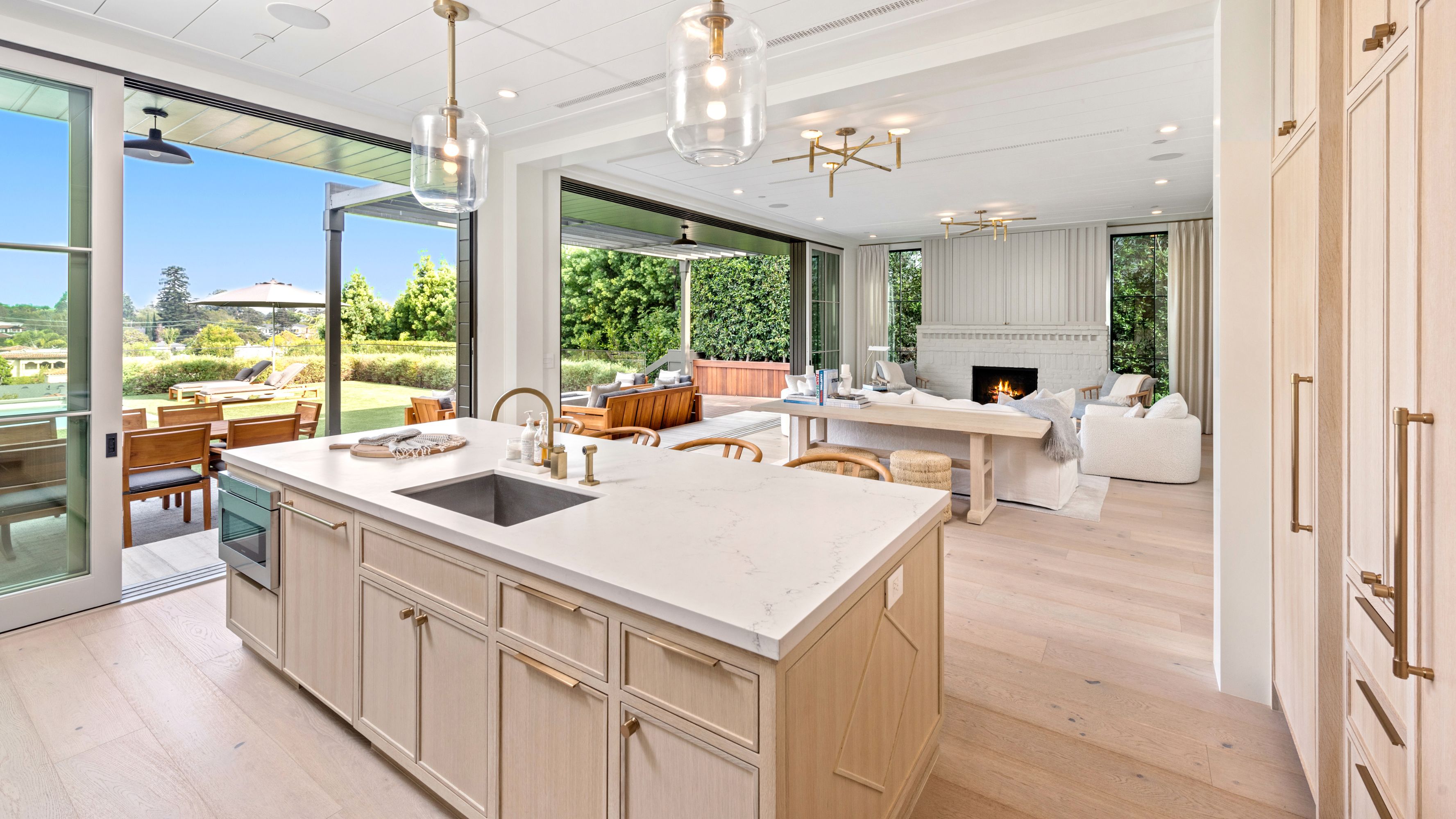 Serene transitional estate tucked away on a highly sought-after Brentwood Helena cul-de-sac. Casual yet sophisticated 6BD 7BA home designed by Cory DeFrancisco of Muskoka Living. Step inside to experience the natural lines, soft tones & luxe materials used throughout. Formal living & dining rooms both have walls of windows, allowing natural light to highlight the gorgeous finishes. A combination of washed oak & painted wood paneling gives the sensation of bringing the best outdoor qualities inside. Kitchen is anchored by oversized island with seating & features high-end appliances & separate prep area. Open concept kitchen blends seamlessly into living area with wet bar & a wall of sliding glass doors that open to the backyard oasis. The outdoor space offers views of the Getty & includes two levels of flat green space, BBQ, patio with fireplace & pool. Primary wing sits on the 2nd floor with spacious walk-in closet, private balcony with views & spa-like bathroom. Two additional BD on 2nd level connect to a deck with seating area. Daylight lower level is perfect for entertaining with the home theater, wine room, fitness room & wet bar. This is an incredible opportunity to live in the Brentwood Helenas - one of the most coveted neighborhoods with convenient access to the best shops, restaurants & schools of Brentwood.
