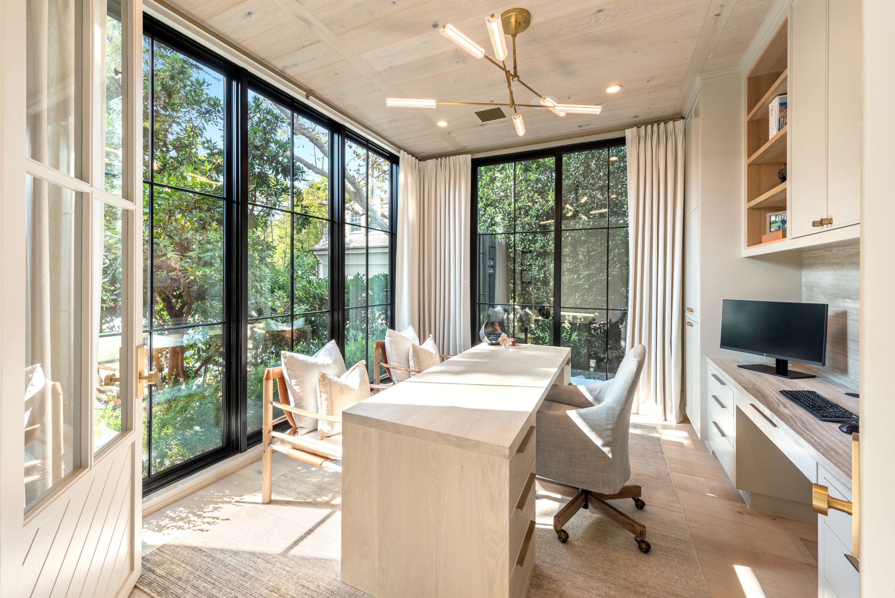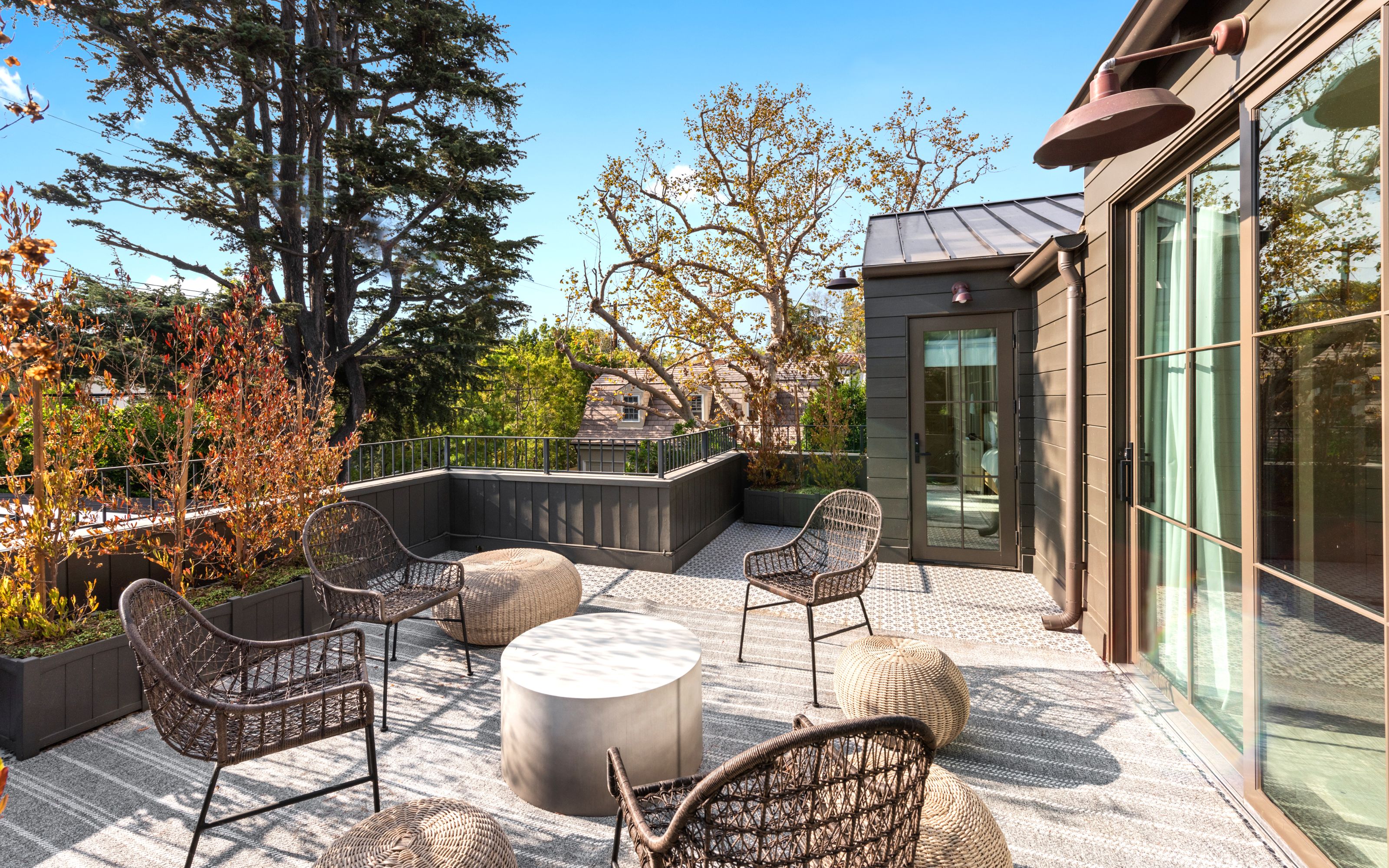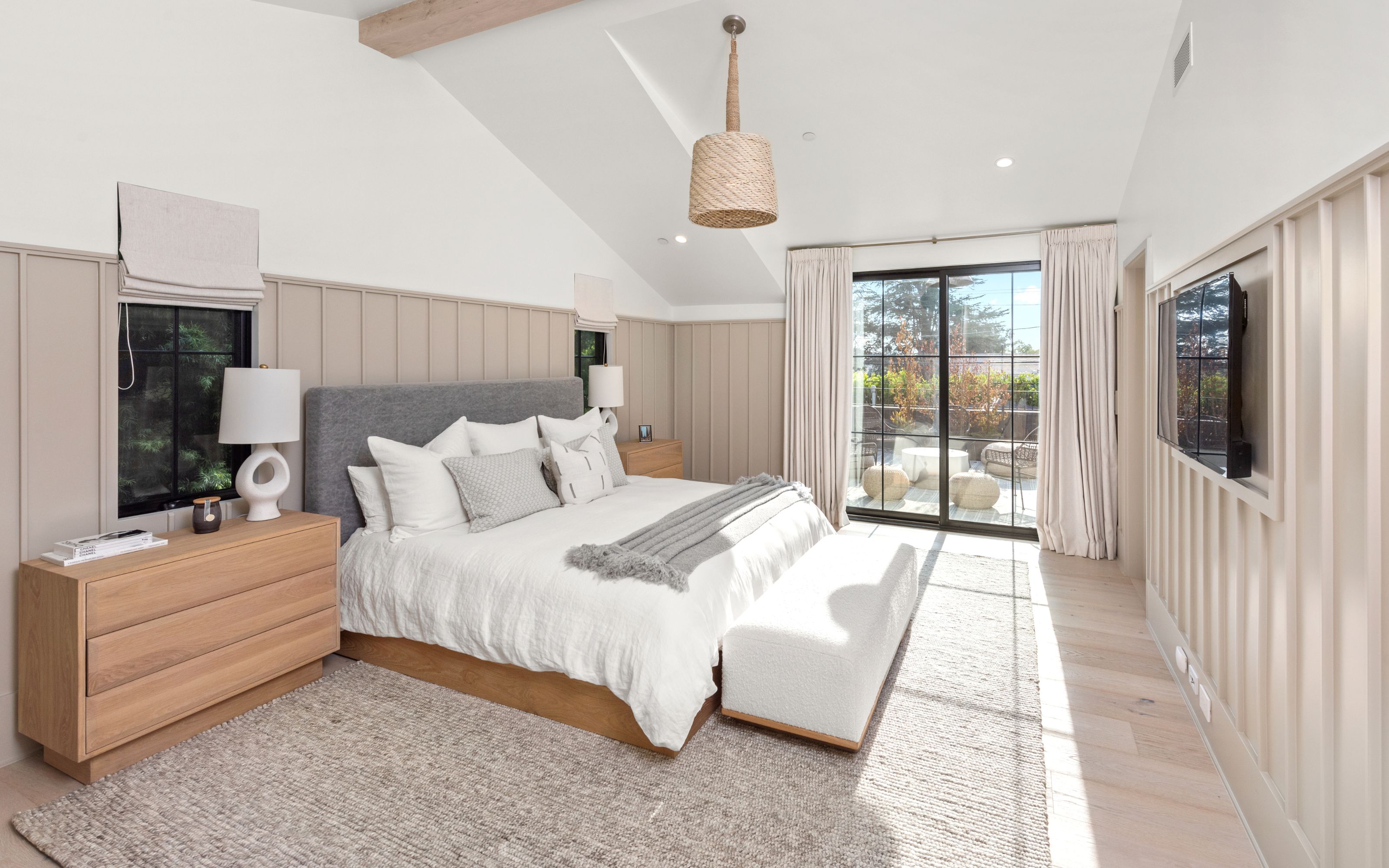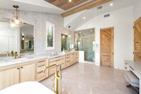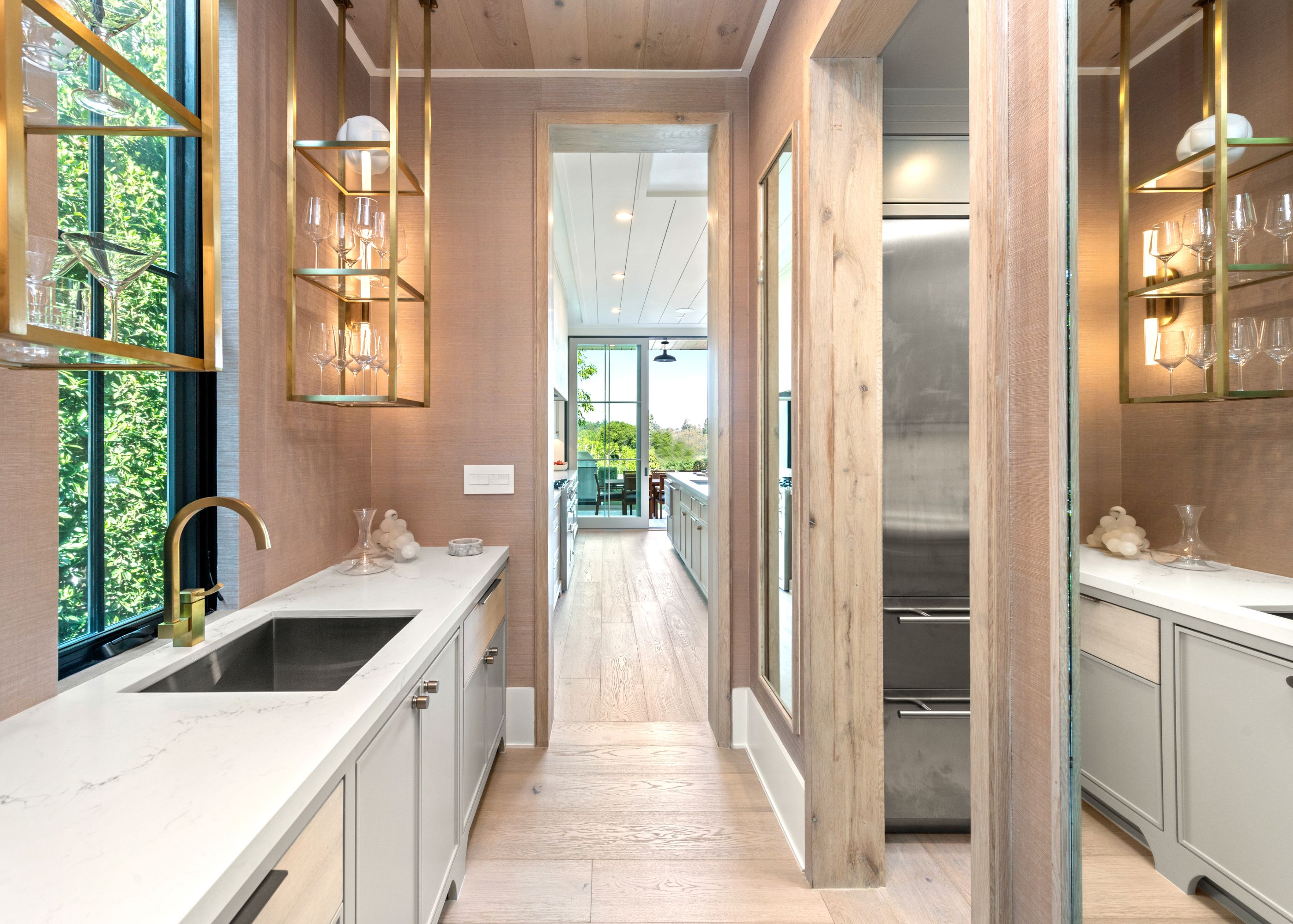 Serene transitional estate tucked away on a highly sought-after Brentwood Helena cul-de-sac. Casual yet sophisticated 6BD 7BA home designed by Cory DeFrancisco of Muskoka Living. Step inside to experience the natural lines, soft tones & luxe materials used throughout. Formal living & dining rooms both have walls of windows, allowing natural light to highlight the gorgeous finishes. A combination of washed oak & painted wood paneling gives the sensation of bringing the best outdoor qualities inside. Kitchen is anchored by oversized island with seating & features high-end appliances & separate prep area. Open concept kitchen blends seamlessly into living area with wet bar & a wall of sliding glass doors that open to the backyard oasis. The outdoor space offers views of the Getty & includes two levels of flat green space, BBQ, patio with fireplace & pool. Primary wing sits on the 2nd floor with spacious walk-in closet, private balcony with views & spa-like bathroom. Two additional BD on 2nd level connect to a deck with seating area. Daylight lower level is perfect for entertaining with the home theater, wine room, fitness room & wet bar. This is an incredible opportunity to live in the Brentwood Helenas - one of the most coveted neighborhoods with convenient access to the best shops, restaurants & schools of Brentwood.
